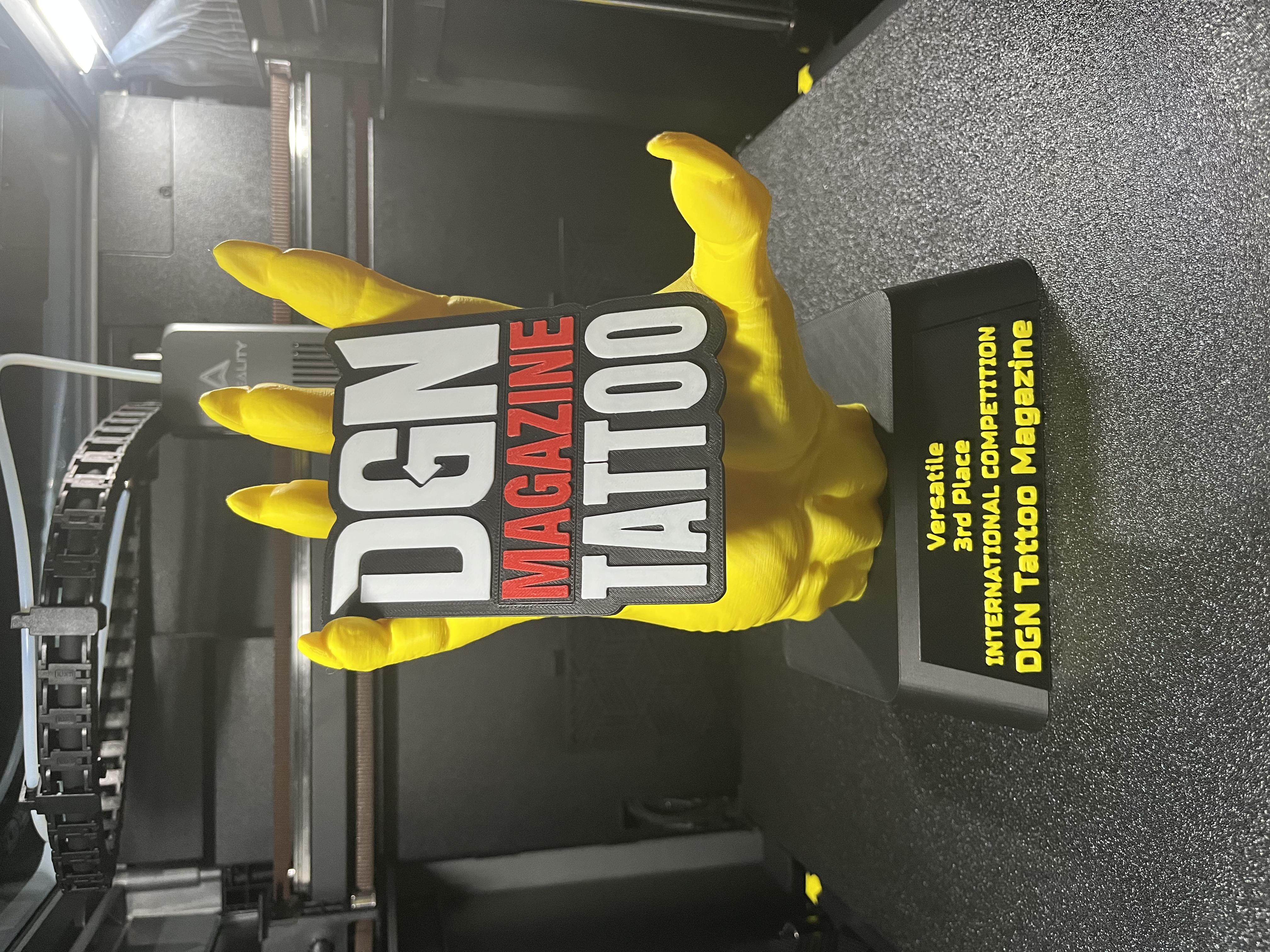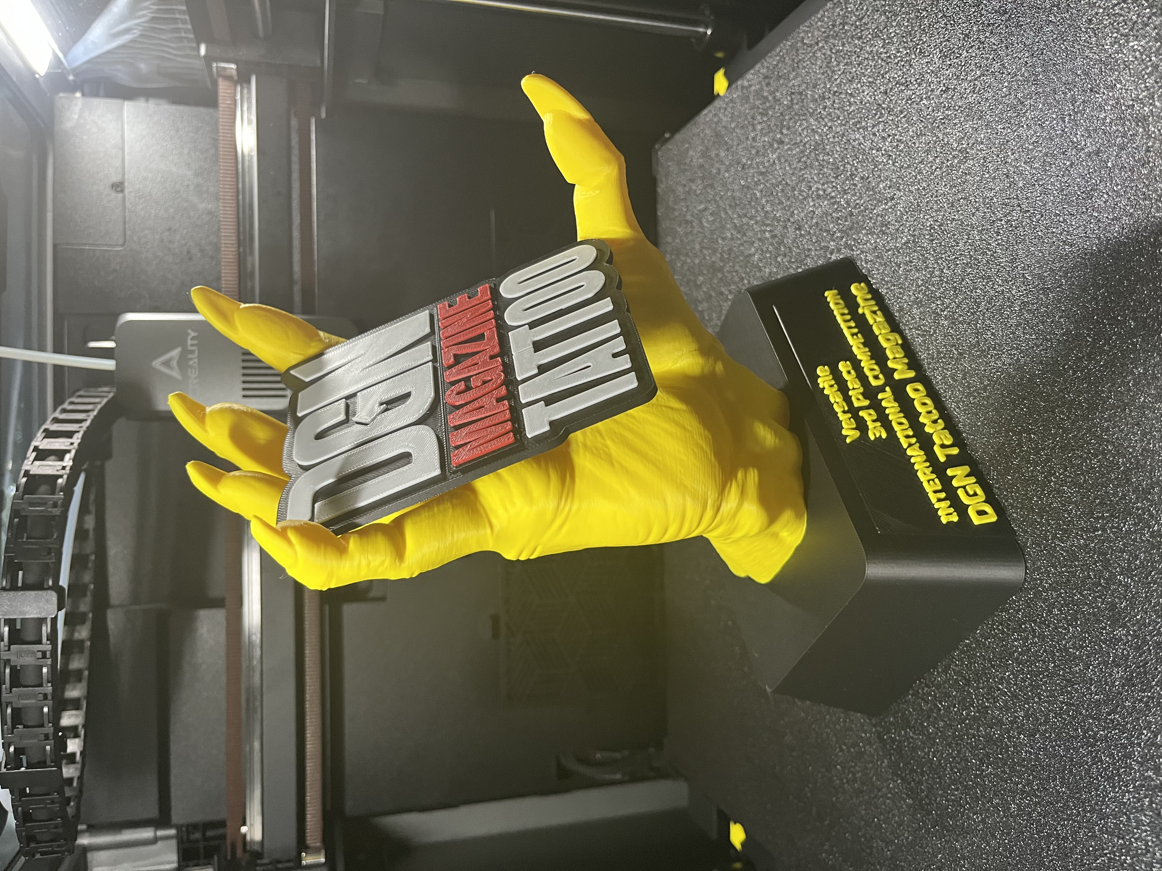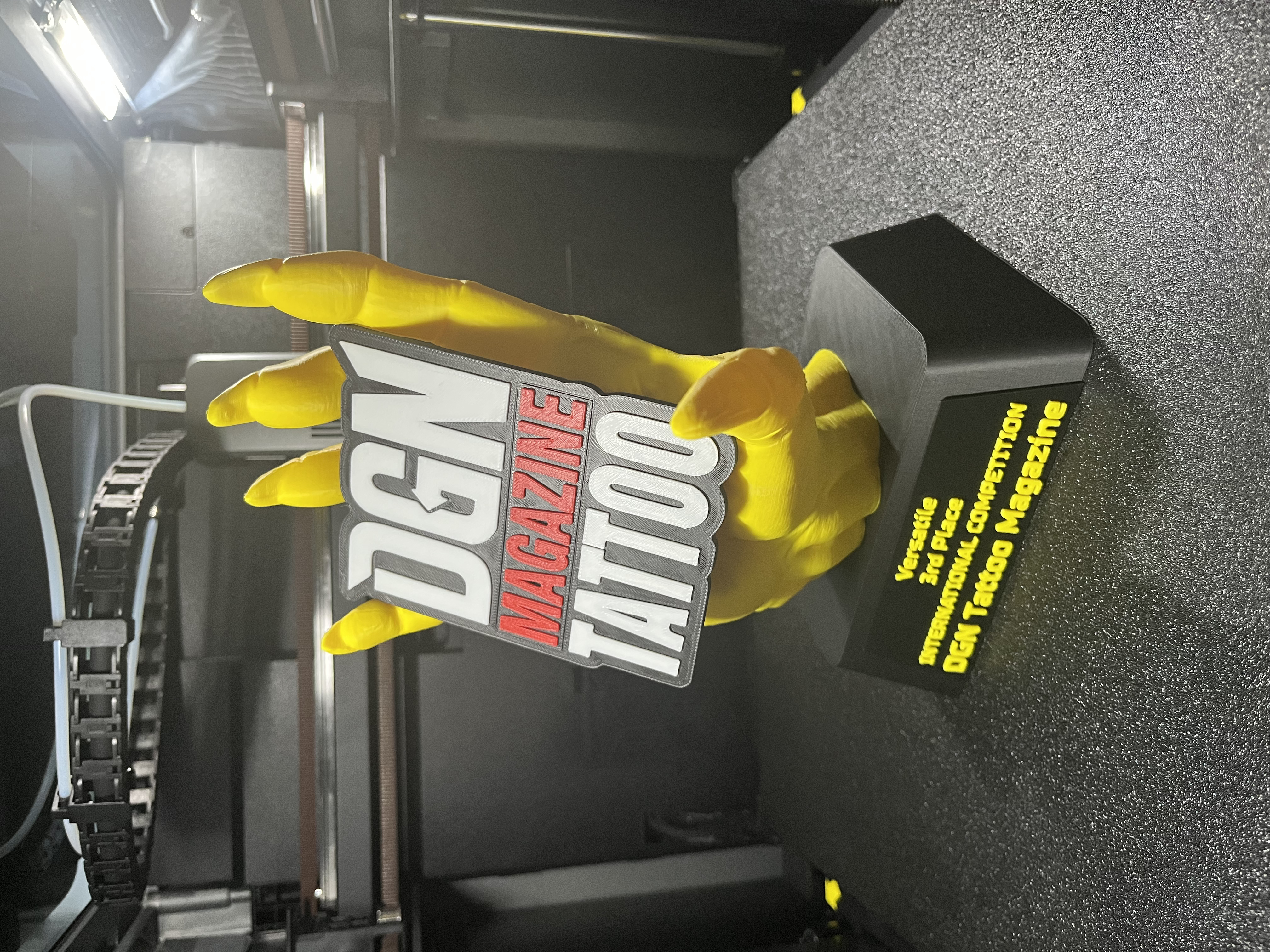 Az alábbi képeken látható tetoválódíj, olyan 3D nyomtatási technológiával készült, amely lehetővé teszi a modern, többszínű nyomtatást. A különböző színek rétegenként, nyomtatás közben kerültek kialakításra, így az eredmény nem festett, hanem anyagában színezett felület. A lenyomat PLA-ból készült, amely környezetbarát, újrahasznosítható alapanyag. A precíz kivitelezésnek köszönhetően a díj tartós, részletgazdag és látványos megjelenést biztosít, amely Ügyfelünkből maximális elégedettséget váltott ki. :)